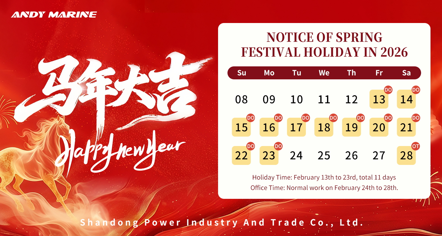 به عنوان یک تامین کننده حرفه ای سخت افزار و لوازم جانبی دریایی، اندی مارین متعهد به ارائه محصولات با کیفیت بالا و خدمات قابل اعتماد است. با نزدیک شدن به جشنواره بهار، کار بخش های مختلف شرکت وارد مرحله نهایی خود می شود و امور سفارش و تحویل قبل از سال جدید نیز وارد مرحله نهایی می شود تا محصولات به موقع به مشتریان تحویل داده شوند.
